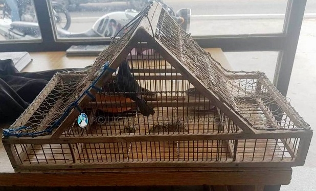 Los Policías, observaron que esta persona transportaba una trampera con un ave canora de la especie Reina Mora, que quedó en calidad de secuestro.
