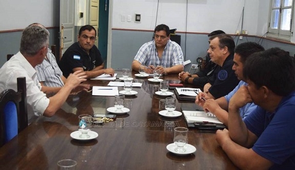 Hoy, a las 18, el Inspector General de Policía, Félix Marcos Salazar, junto al Jefe del Departamento Operaciones Policiales, Ramón Edgardo Salas, recibieron a representantes de la Agrupación VIII Catamarca de Gendarmería Nacional Argentina, de la Policía de Seguridad Aeroportuaria, de la Delegación Catamarca de la Policía Federal Argentina, y de la Aduana Argentina.