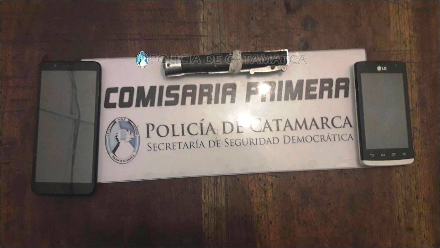 Al momento de realizarle la requisa personal correspondiente, los policías lograron recuperar el aparato de comunicación sustraído, como así también incautaron otro teléfono celular LG, de colores blanco y negro, un cortapluma de unos 20 cm. de largo, y una motocicleta Gilera negra 110 cc., en la que circulaba.