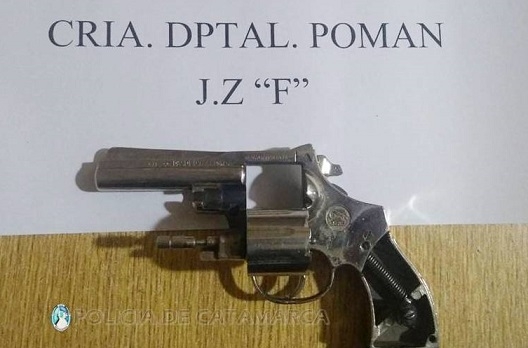 Anoche a las 23 en calle San Sebastián, del barrio Centro, de la localidad de Pomán, fue aprehendido un hombre de apellido Santana (36), quien estaba en estado de ebriedad, y tenía un revólver marca Pasper calibre 22 corto, sin cartuchos.