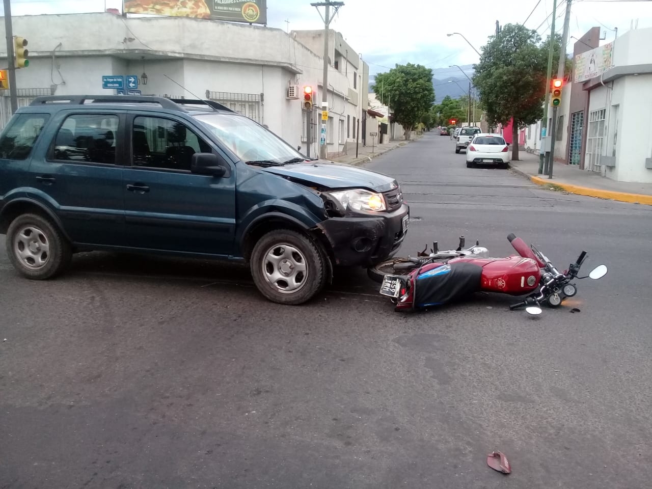 En el lugar, una moto que cruzaba la avenida por calle Esquiú, por razones que se tratan de establecer, impactó contra una camioneta que transitaba por Virgen del Valle.
