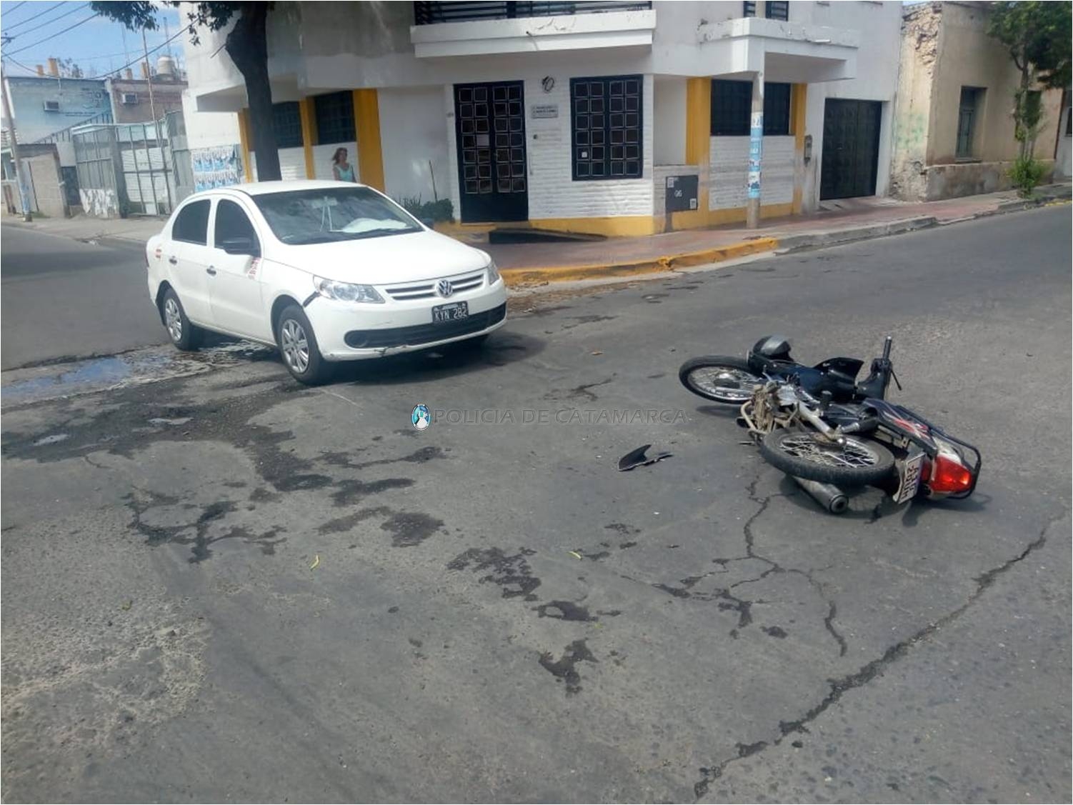 Claudia Micaela Díaz (36) circulaba en una motocicleta Corven Mirage 110 cc., dominio A102QUM, de color negro, acompañada por Nancy del Carmen Díaz (39), y por motivos que son materia de investigación, colisionó con un automóvil Volkswagen Voyage blanco, dominio KYN-282, conducido por Jorge Guillermo Vera (72).