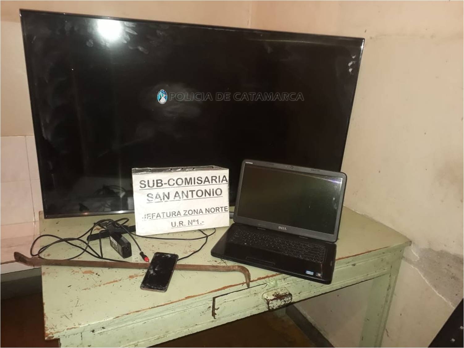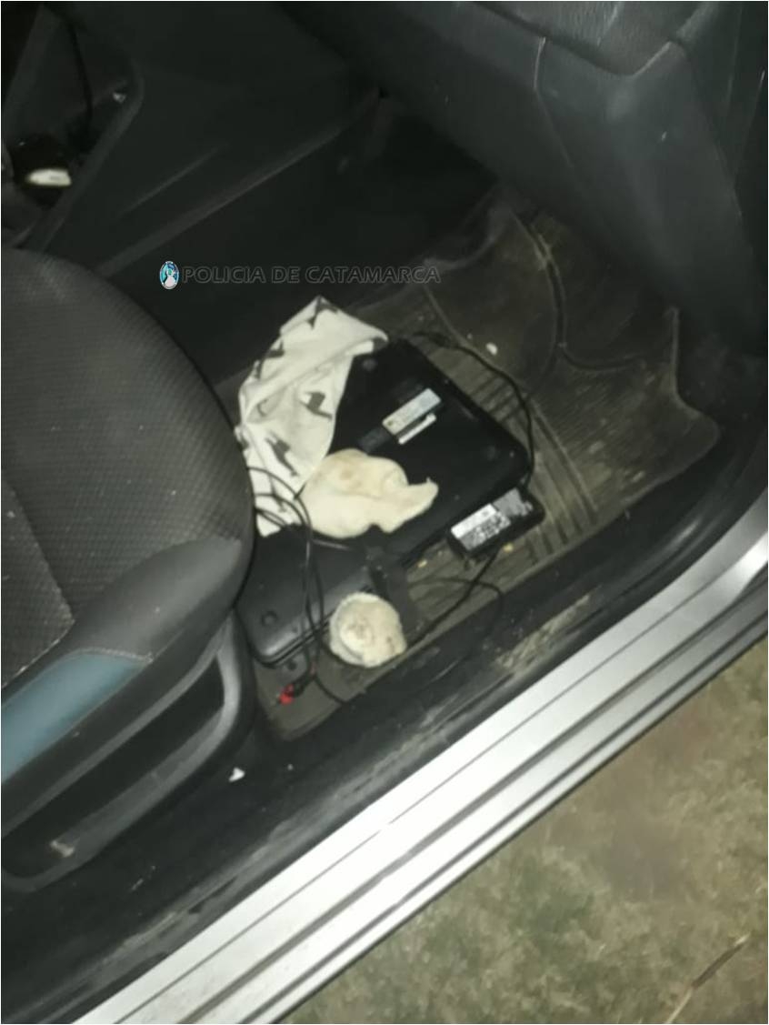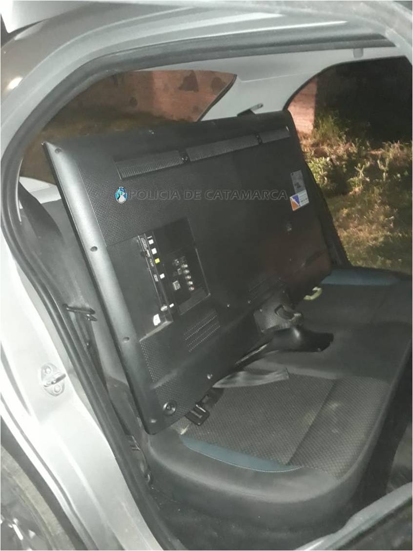 Al momento de inspeccionar el rodado, los policías incautaron un Televisor Samsung de 50 pulgadas, de color negro, una notebook Dell negra y un teléfono celular LG de color negro, que tras averiguaciones realizadas establecieron que habrían sido sustraídos de un domicilio del Loteo El Remanso, propiedad de un hombre mayor de edad, a quien se lo invitó a denunciar el hecho en la Unidad Judicial N° 11.
