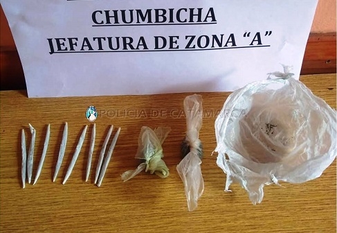 Al momento de ser identificados y realizarles la requisa correspondiente, los policías encontraron entre sus prendas de vestir una bolsa, que en su interior contenía dos envoltorios de nylon aparentemente con Marihuana y ocho cigarrillos de armado casero con la misma sustancia estupefaciente, que quedaron en calidad de secuestro y fueron remitidos a la Dirección Drogas Peligrosas de la Policía de la Provincia, donde se labran las actuaciones de rigor, bajo las directivas del Juzgado Federal.