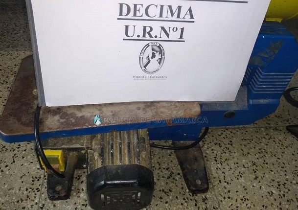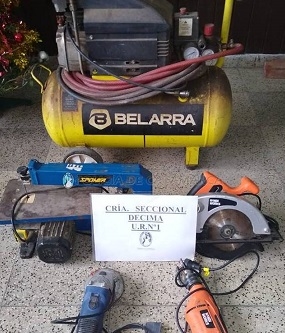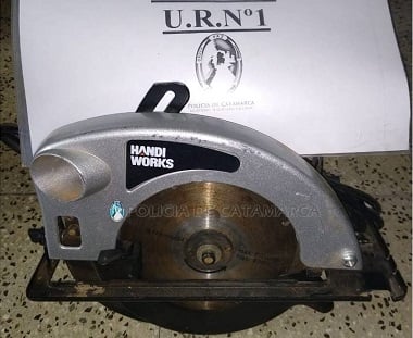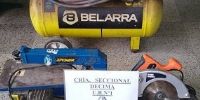 A las 13:30 de hoy, en el Pasaje Jujuy y calle Córdoba, policías secuestraron un compresor de aire Belarra, una amoladora azul, una caladora de banco de color azul, un taladro y una sierra circular, ambas marca Handi Works, que estaban abandonados.
