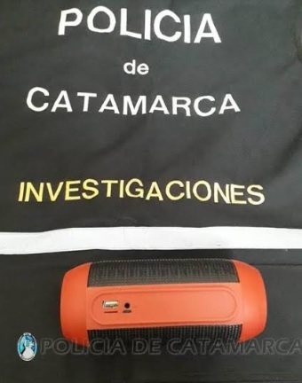 Ayer, a las 10 policias realizaron un registro en una vivienda ubicada en la calle Mota Botello Este del B° Bella Vista, propiedad de la familia Salgado, donde recuperaron un parlante portátil, de color negro.