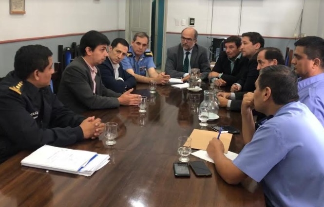 Durante la mañana de este martes se llevó a cabo una reunión en la Sala de Situación de la Jefatura de Policía, con la presencia del Secretario de Seguridad Marcos Denett, el Juez de Menores Rodrigo Morabito, el Director de Derechos Humanos de la Prov. Hernán Velardez, los Directores de Planes de Seguridad, Coordinación y Ejecución, Sub Jefe de Policía y representantes de la plana mayor policial, mentores del encuentro.