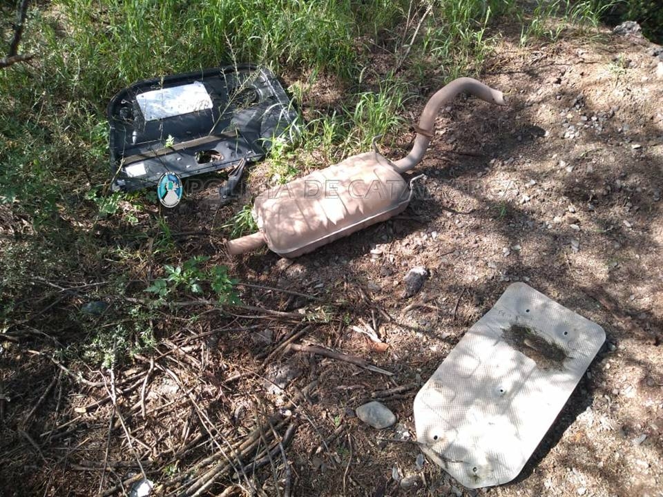 En el lugar, los policías constataron que un automóvil KIA Sorento, de color gris, estaba oculto entre la maleza y le faltaban autopartes.