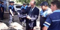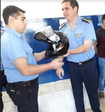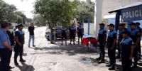 En la oportunidad, el Secretario de Seguridad Democrática, Marcos Denett, junto al Subjefe de Policía, Carlos Alfredo Kunz, entregaron cascos protectores para motocicletas y bermudas, al personal que trabaja en dichas dependencias.