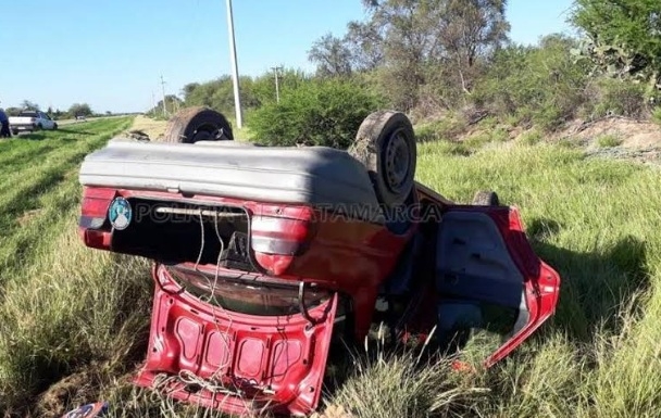 Hoy, a las 8:30, en ruta nacional N°38, a la altura del kilómetro 549, un Ford Orión, dominio BKQ-293, de color rojo, en el que iban Juan Carlos Castilla (54), Cesar Villarroel (24), Mercedes del Carmen Villarroel (54), Rosa Villarroel (67), y un niño de 4 años volcó al costado de la banquina.