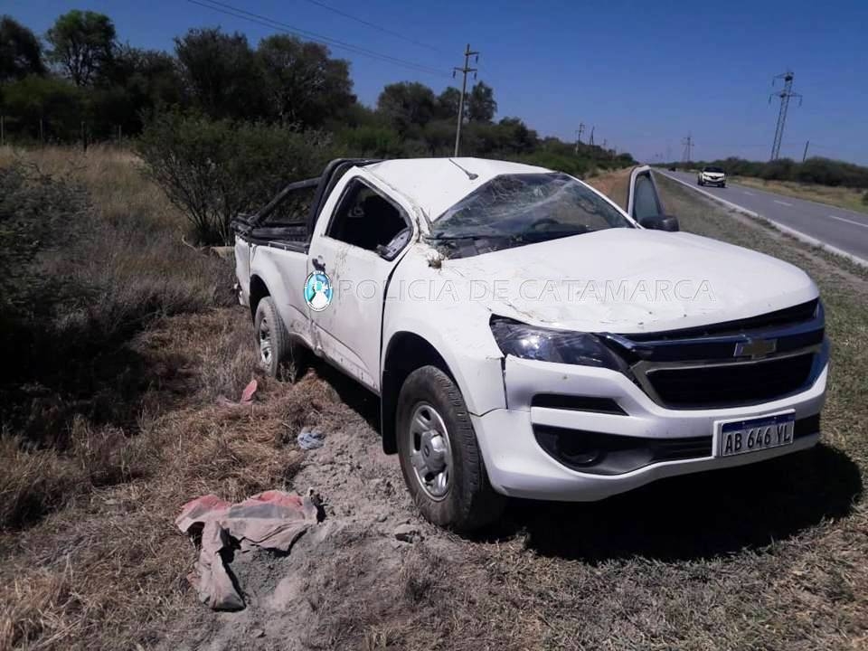 En el lugar, una camioneta Chevrolet S-10 blanca, dominio AB646YL, al mando de Claudia Lamas (60), en compañía de José Luis Báez (68), ambos oriundos de la provincia de Tucumán, por causas que se tratan de establecer, terminó volcando a un costado de la banquina.
