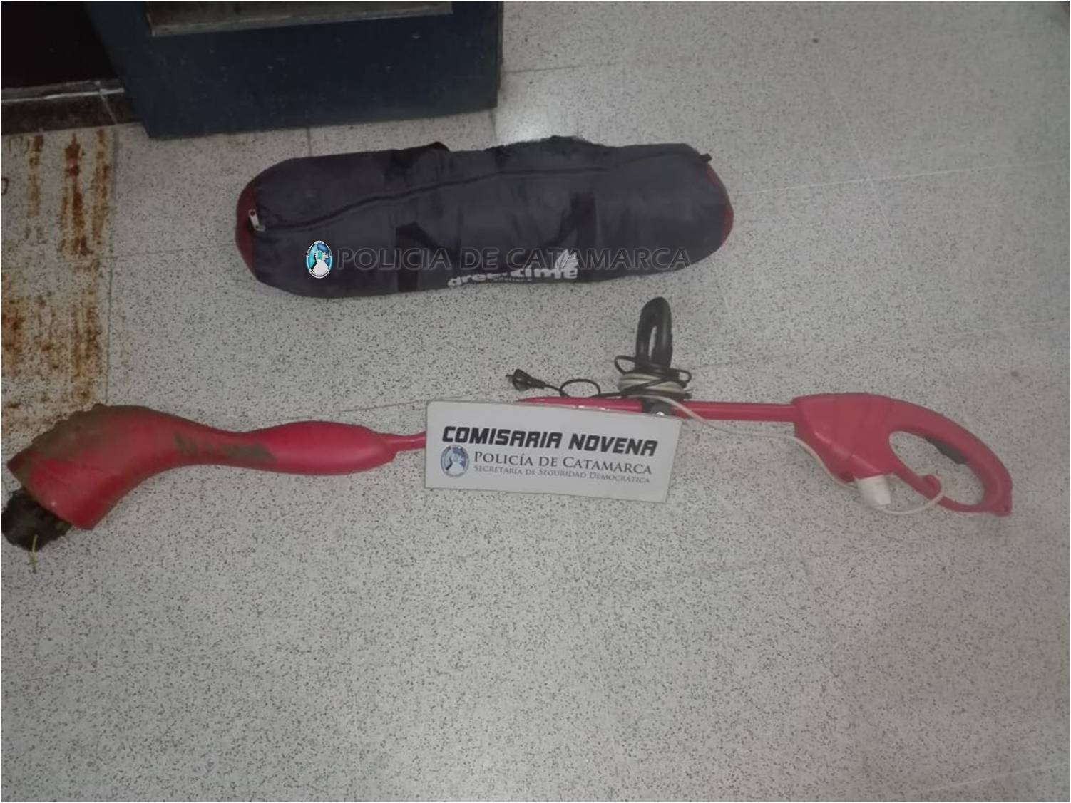 En la madrugada de este jueves, a las 00, mientras personal de la Comisaría Novena realizaba recorridos de prevención por el barrio 100 viviendas sur, procedió a la aprehensión de un joven de apellido Barrionuevo, de 19 años, y a la demora de un adolescente de 17 años, quienes habrían sido sorprendidos llevando una bordeadora de césped roja y una carpa azul, que quedaron en calidad de secuestro.