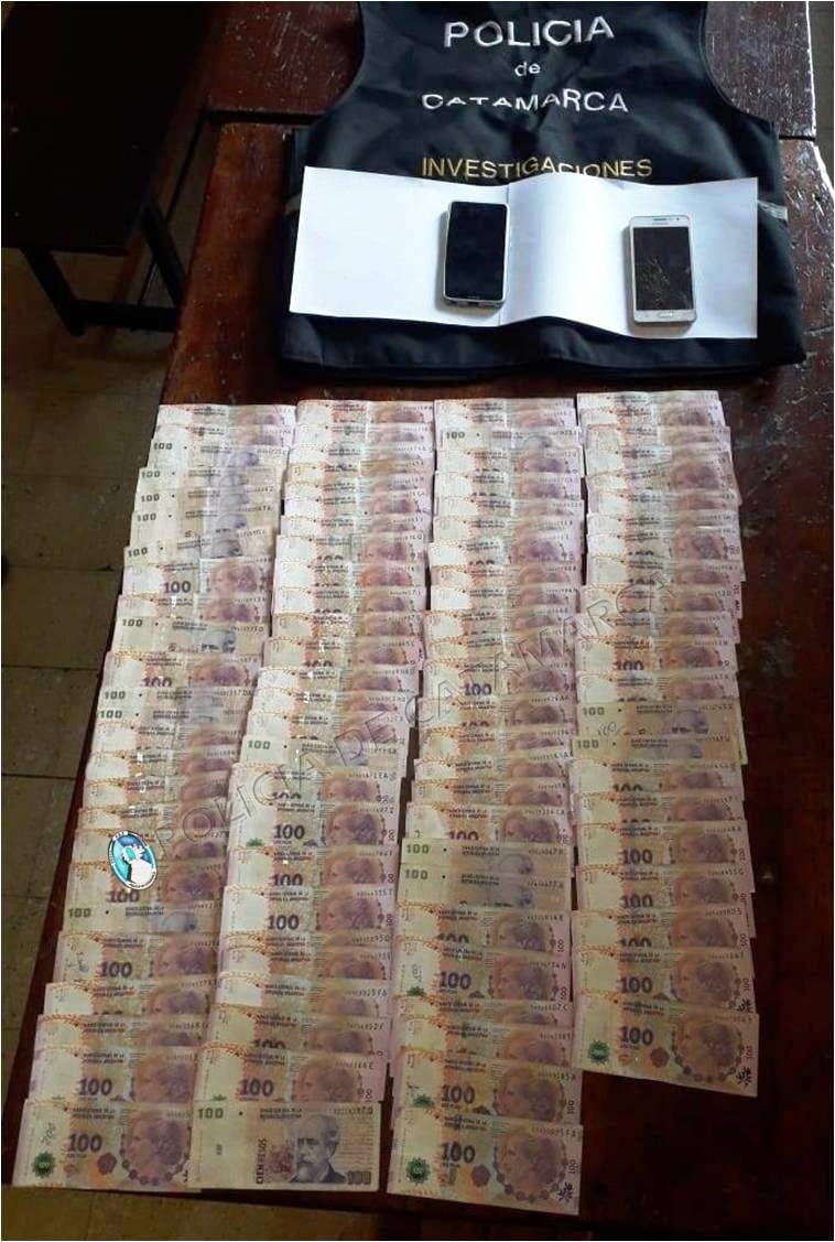 A este sujeto le realizaron la requisa correspondiente, y los investigadores le encontraron entre sus pertenencias 9900 pesos en efectivo, y dos teléfonos celulares de diferentes marcas y modelos, que serían producto de otro ilícito, por lo que quedaron en calidad de secuestro.