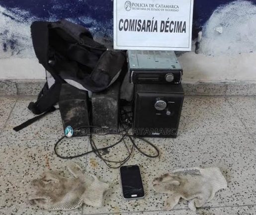 Al momento de la requisa, se le encontró un estéreo LG, un equipo de música marca Edifier, un teléfono celular Samsung, un par de guantes de tela reforzados, que habría intentado comercializar, de los cuales no supo acreditar su legitima propiedad y procedencia, por lo que quedaron en calidad de secuestro.