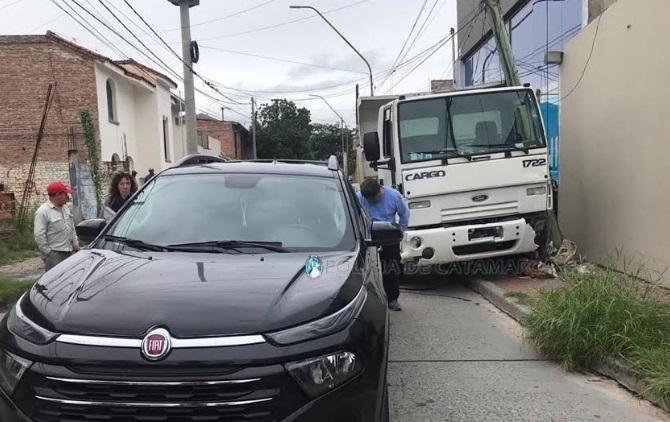 Tras el impacto, el camión chocó contra un poste del alumbrado público.