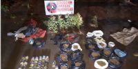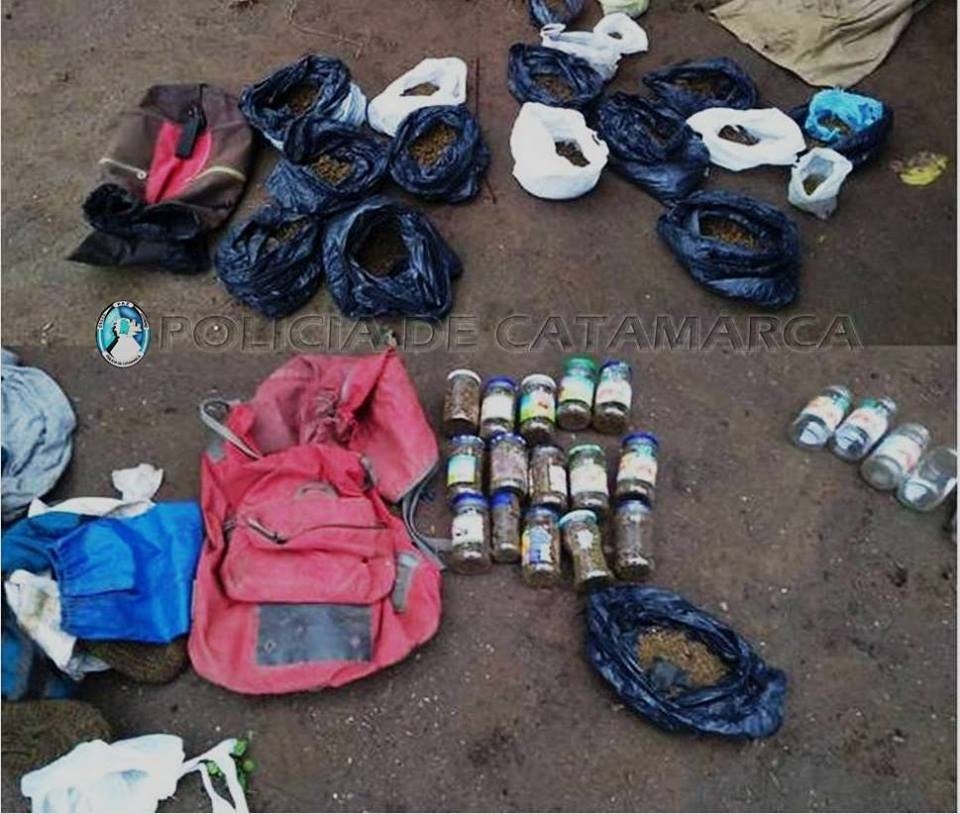 Mientras que en una finca propiedad de la familia Palacios, ubicada en el Paraje La Aguada, incautaron plantas de Marihuana de distintos tamaños, que estaban siendo cultivadas ocultas detrás de una densa vegetación, bolsas de nylon y frascos de vidrio conteniendo unos 2,500 kg. de picadura de la sustancia estupefaciente compuesta por hojas, tallos y semillas triturados, y una bomba de agua que estaba en medio de la maleza existente en el lugar.