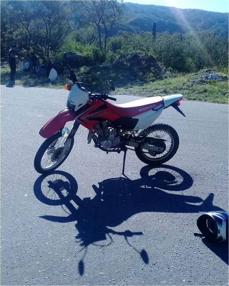 En el puesto caminero La Puerta, ubicado en la ruta provincial Nº 1, de esa localidad del departamento Ambato, intentaron identificar a dos personas que circulaban en una motocicleta Honda Tornado XR 250 cc., de colores rojo y blanco, dominio A047WPD, quienes habrían emprendido la fuga.