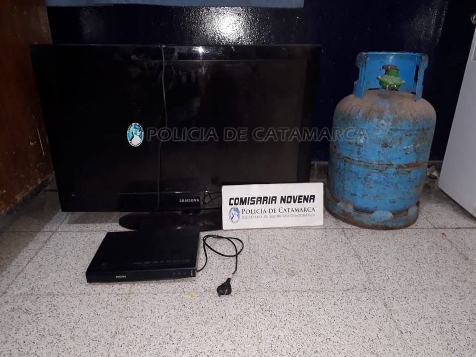 En el lugar, procedió a la demora de dos adolescentes de 16 años, quienes habrían sido sorprendidos llevando un televisor Samsung de 32 pulgadas, un DVD marca Philips de color negro y una garrafa de gas de 10 Kg., de color verde, que serían producto de un ilícito perpetrado momentos antes en un domicilio propiedad de una joven mujer de 18 años.