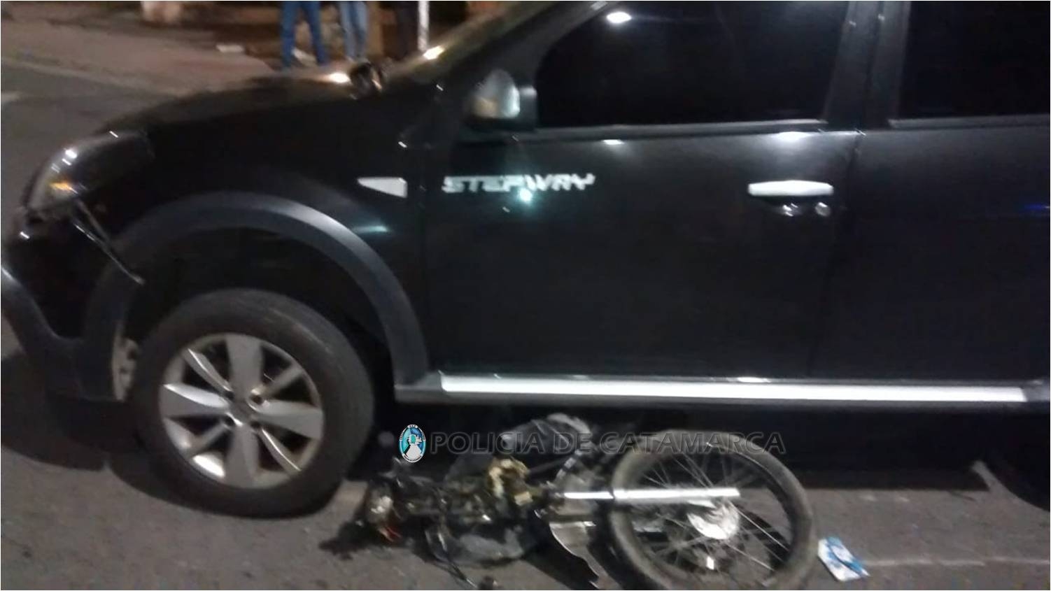 En la madrugada de este viernes, a las 2.45, en la intersección de las calles Río Salado y Río El Tala, se registró un siniestro vial protagonizado por una motocicleta Honda CG Titán 150 cc., dominio A039XXI, de color negro, al mando de Ariel Norman Acosta (42), acompañado por Mercedes del Carmen Altamiranda (39).