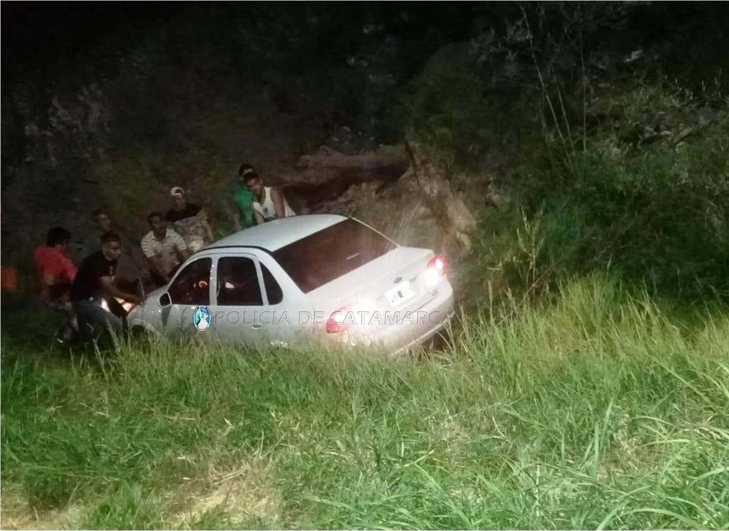 Robledo Alexis Ramón (30) circulaba al mando de un automóvil Chevrolet Corsa blanco, dominio PGX-490, y por causas que se tratan de establecer, perdió el control del rodado y cayó a un costado de banquina.