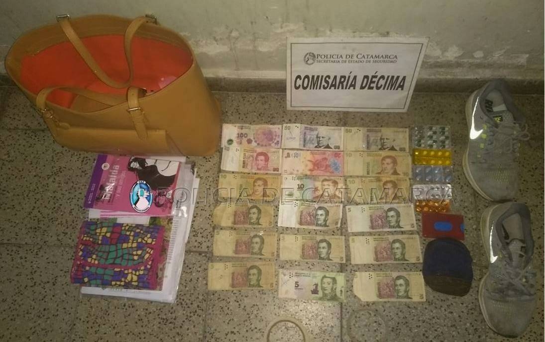 Del lugar, sustrajo una cartera de color marrón que en su interior contenía un par de zapatillas Nike, la suma de 325 pesos en efectivo, varios blíster de medicamentos y elementos de estudio, que quedaron en calidad de secuestro.