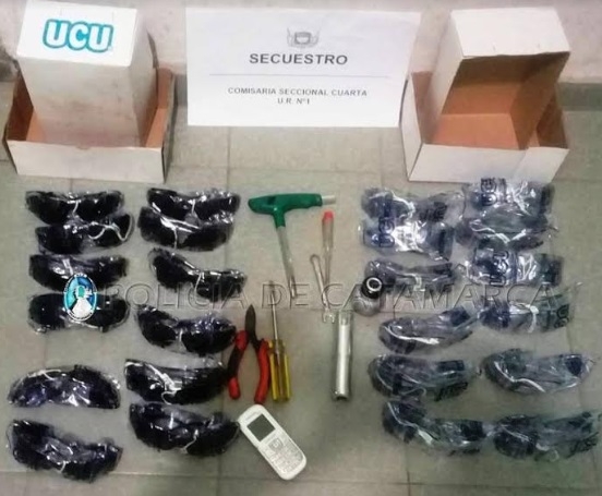 Durante la requisa correspondiente, el personal interviniente secuestró 24 anteojos para sol marca UCU, un alicate, dos destornilladores, un elemento punzante de fabricación casera, conocido como “espadita”, una llave, un tubo y un teléfono celular de color blanco, que esta persona tenía en su poder.