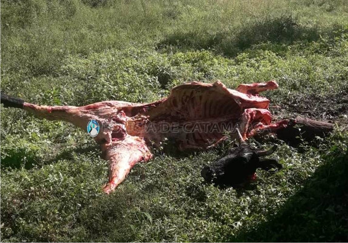 Los efectivos policiales llegaron a inmediaciones a la balanza municipal, ubicada en el paraje Paisorcona, en la ruta provincial Nº 42, de la Villa El Alto, donde estarían faenando animales vacunos.