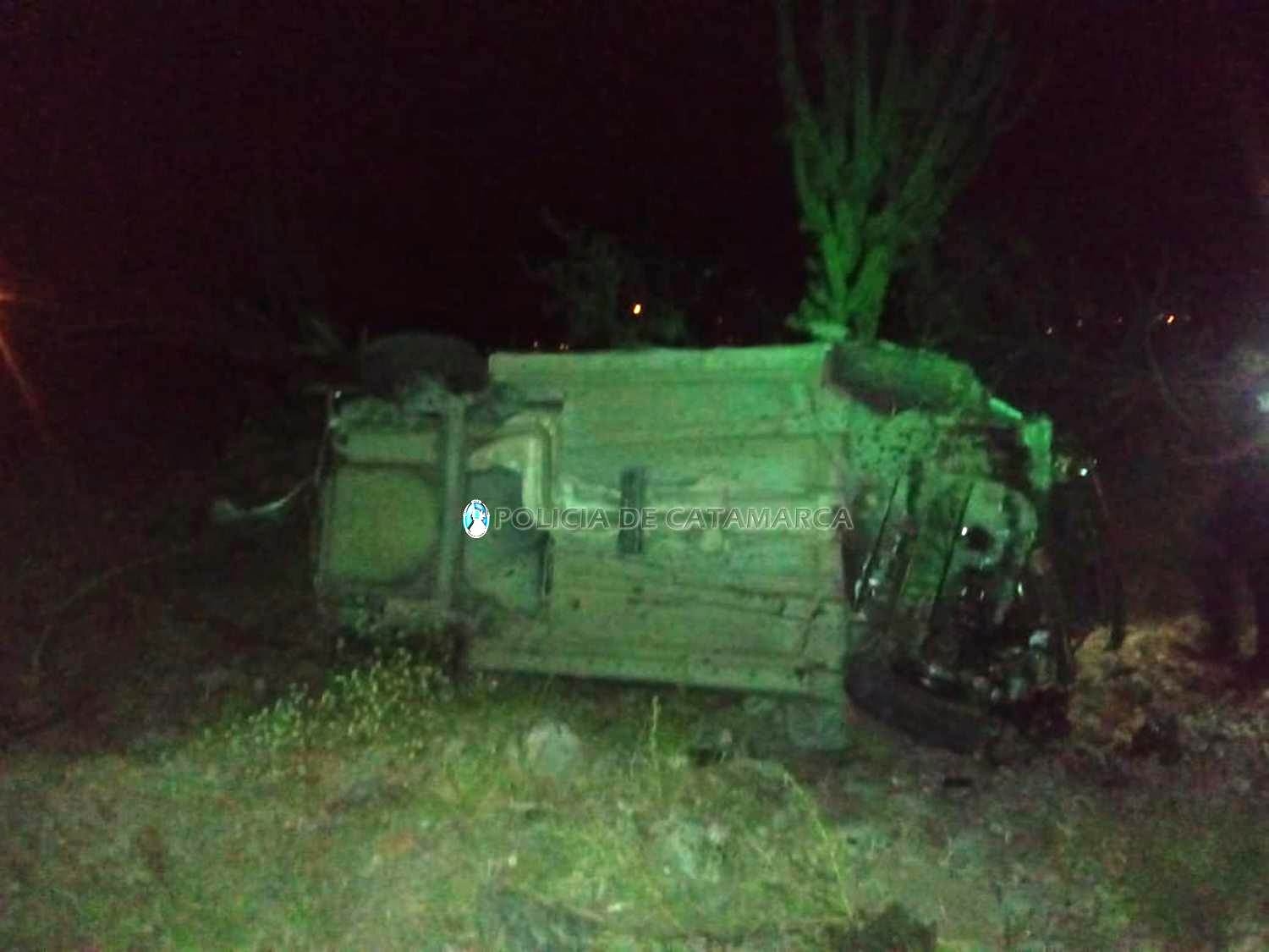 El accidente fue protagonizado por un automóvil Ford Fiesta, dominio PIQ-519, de color gris, al mando de Pablo Sebastián Espoz (34), quien por causas que son materia de investigación, perdió el control del rodado y volcó a un costado de la calzada.