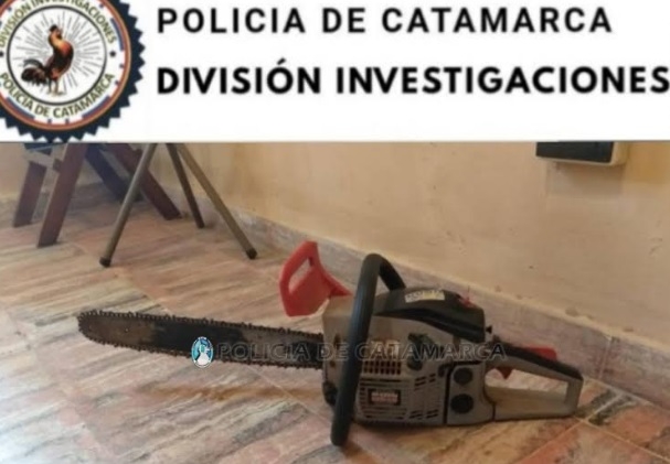 Personal de la División Investigaciones de la Policía de la Provincia materializó hoy un registro en una vivienda del barrio La Loma, en Santa Rosa, Valle Viejo, propiedad de la familia Bazán, donde recuperaron una motosierra robada.