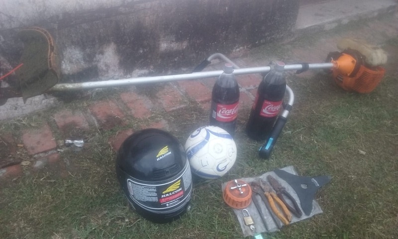 A media mañana, tras la intervención de la Policía Provincial y de la Policía Judicial de Valle Viejo, se pudieron recuperar algunos elementos, como una motoguadaña, pinzas y otras herramientas, un balón, un casco de motociclista y embases de algunas gaseosas sustraídas del lugar.