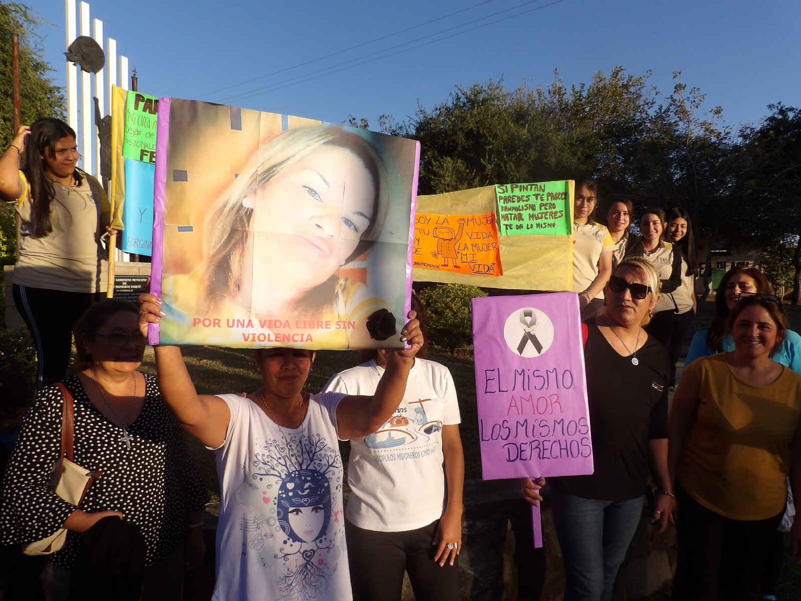 Los manifestantes llevaron pancartas reclamando al poder judicial que imparta medidas urgentes para frenar la ola de femicidios en nuestra provincia y celeridad en las denuncias por violencia de género.