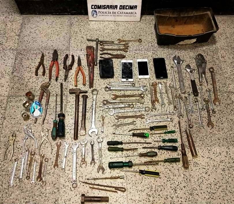 Más tarde, a las 5.40, tras averiguaciones practicadas, los policías conjuntamente con Sumariantes de la Unidad Judicial Nº 2, bajo las directivas de la Fiscalía interviniente materializaron un registro domiciliario en la vivienda del ahora aprehendido y lograron recuperar varias herramientas, una billetera y tres teléfonos celulares Samsung; un J-1, y dos J-2 respectivamente, que serían producto de los ilícitos perpetrados, por lo que quedaron en calidad de secuestro.
