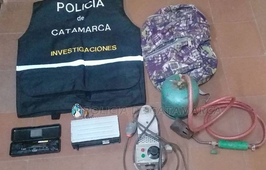 Más tarde, los investigadores se constituyeron en la esquina de las calles Salta y Chacabuco, de esta ciudad Capital, e hicieron lo propio con un joven de apellido González (29), quien circulaba a bordo de un automóvil Volkswagen Up azul y, tras inspeccionar el rodado, conjuntamente con Sumariantes de la Unidad Judicial Nº 2, encontraron $3.030 discriminados en billetes de distinta denominación, una potencia de marca Boss, un teléfono celular Samsung J-2 Prime dorado, dos cajas de cigarrillos, un cargador inalámbrico con su respectivo cable, una cubierta rodado 14, una rueda de auxilio, que habrían sido adquiridos con el dinero sustraído, en virtud de lo cual quedaron en calidad de secuestro al igual que el vehículo y documentación varia de interés para la causa.