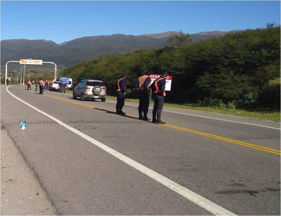 Entre la tarde y la noche de este domingo, luego de un dispositivo de seguridad diagramado en virtud del partido futbolístico que disputaron los Clubes Deportivo Américo Tesorieri y Atlético Güemes de la provincia de Santiago del Estero en el Estadio Malvinas Argentinas de la Capital, efectivos de la Comisaría Departamental La Merced, conjuntamente con sus pares del Grupo de Infantería y personal de la Jefatura de Zona Norte de la Unidad Regional Nº 1, de la Dirección Drogas Peligrosas de la Policía de la Provincia y de la División de Operaciones Especiales Kuntur, realizaron un operativo de control vehicular e identificación de personas en la ruta nacional Nº 38, a la altura de báscula de esa localidad del Departamento Paclín.