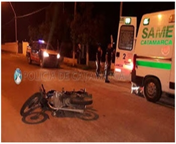 A las 20, en la Avenida de Circunvalación Dr. Néstor Kirchner, inmediaciones al Mercado de Abasto Municipal, de la localidad de Sumalao, departamento Valle Viejo, se registró un siniestro vial protagonizado por una motocicleta Honda Wave 110 cc., dominio A039YCQ, de color rojo, al mando de Miguel Ángel Ponce (32), en compañía de Karen Gómez Valdez (20).