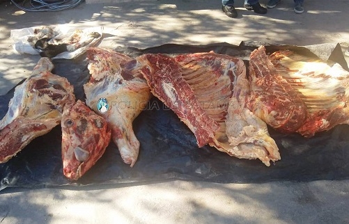 Al momento de inspeccionar el rodado, los Policías constataron que llevaba en la caja unos 150 Kg. aproximadamente de carne vacuna, que quedaron en calidad de secuestro, en virtud de que el conductor carecía de la documentación para acreditar la procedencia de la misma, como así también no contaba con las medidas de salubridad e higiene correspondientes.