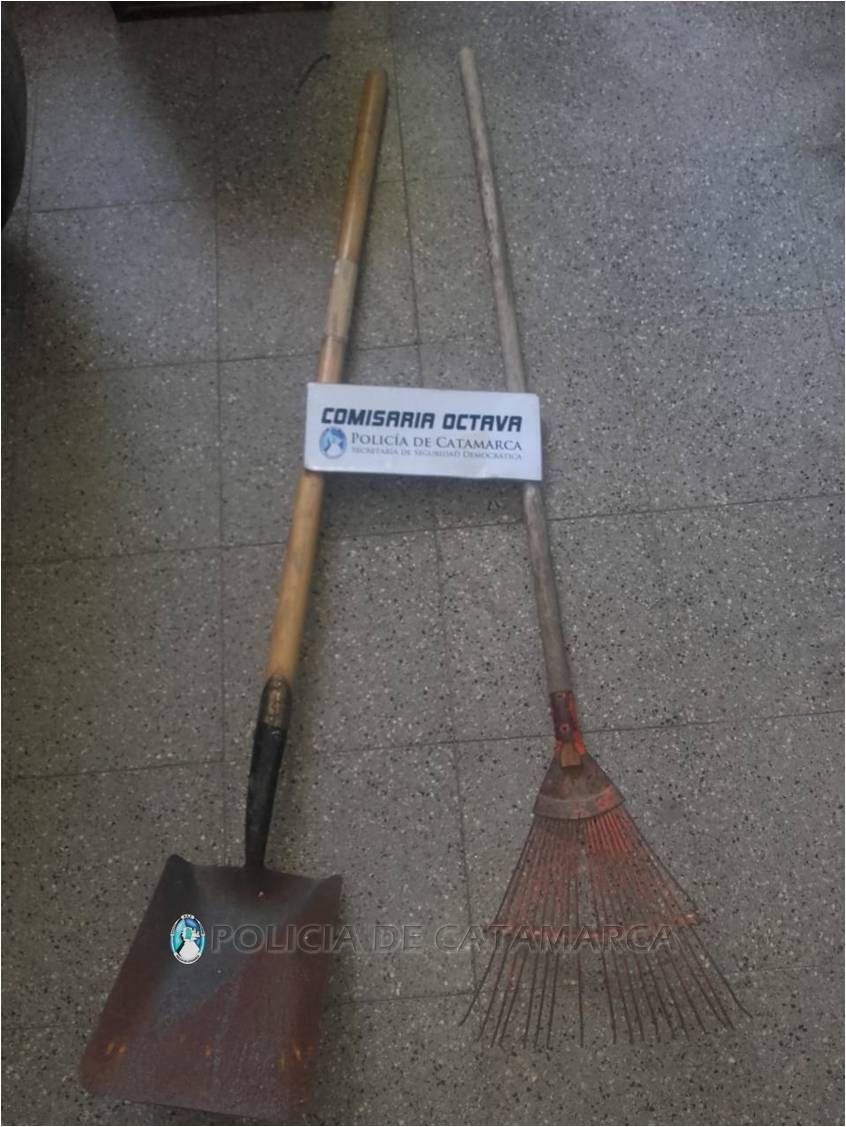 En el lugar, habrían sorprendido a un sujeto ofreciendo a la venta una pala y un rastrillo, y al percatarse de la presencia policial, emprendió la fuga dejando abandonados en el lugar las herramientas, que quedaron en calidad de secuestro.