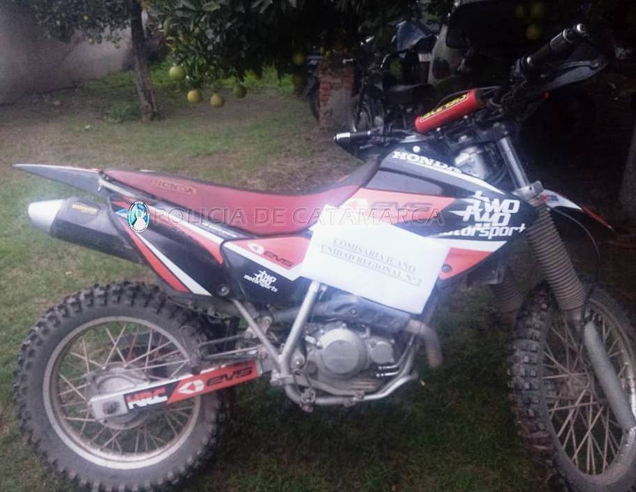 En el lugar, los policías procedieron al secuestro de una motocicleta Honda Tornado 250 cc., de colores negro y naranja, sobre la cual obraba un pedido de secuestro, a raíz de una denuncia radicada en el año 2015 en la Unidad Judicial N° 4 de esta Ciudad Capital, por sustracción de la misma, que quedó a disposición de la Justicia interviniente, desde donde se impartieron las medidas a seguir.