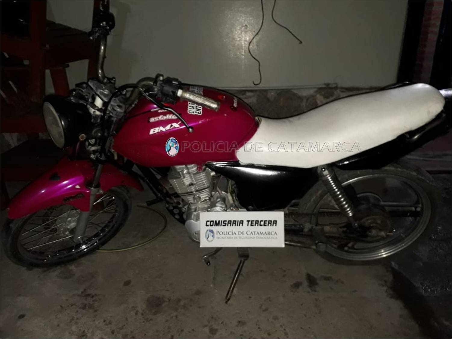 A la altura de la rotonda de ingreso a Banda de Varela, observaron a dos sujetos que circulaban a bordo de una motocicleta Motomel CG 150 cc., de colores rosado y negro.