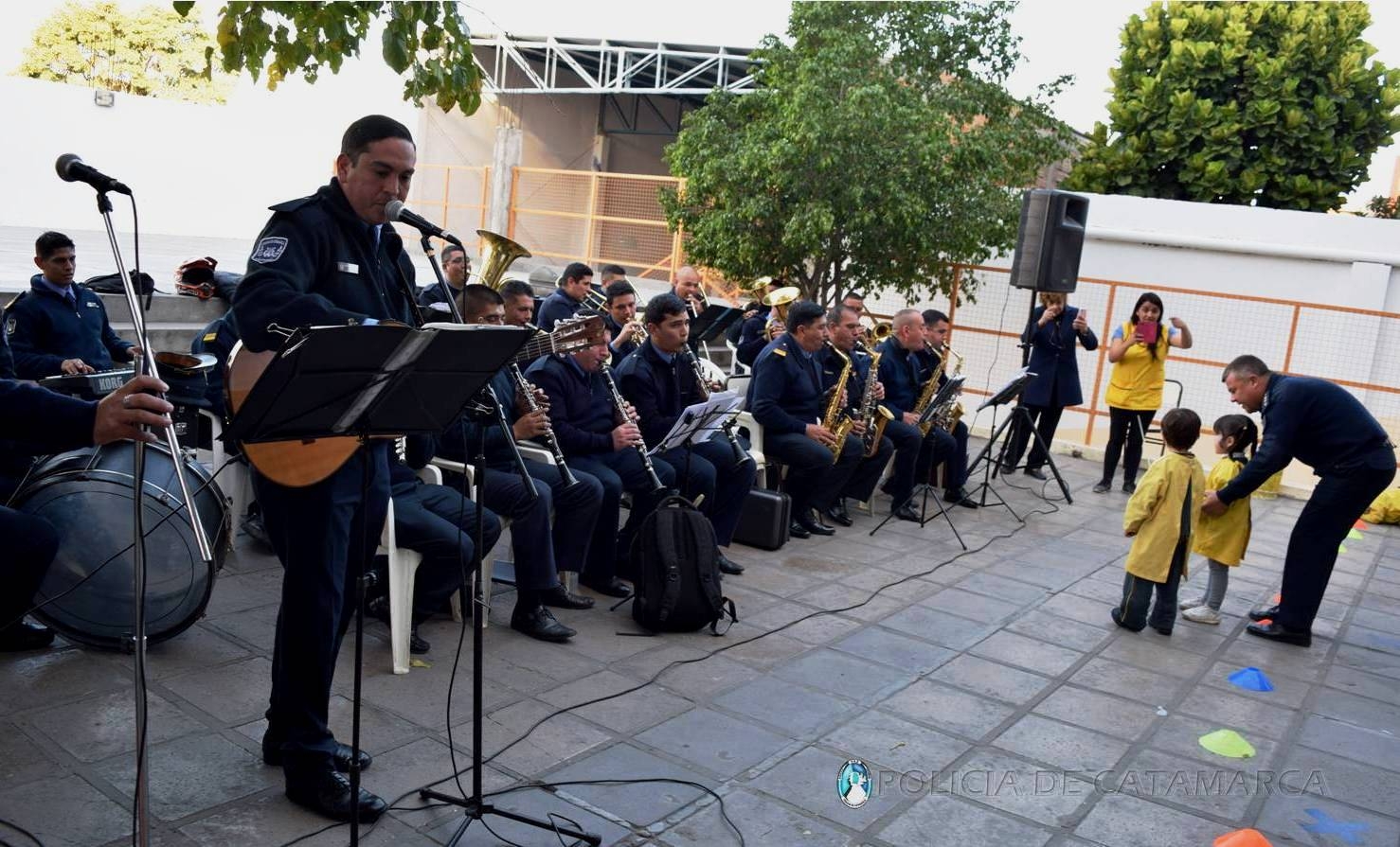 En la oportunidad, y en el marco de los festejos por el Día del Padre, los efectivos brindaron una retreta musical, de la que participaron niños del jardín de infantes y nivel inicial que concurren a dicha institución, como así también docentes, directivos del establecimiento y padres que se unieron a tal convocatoria, participando de juegos y otras actividades, compartiendo un grato momento.