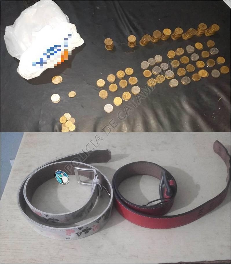 Cabe señalar que al realizarle la requisa correspondiente, los efectivos encontraron entre sus pertenencias una bolsa blanca con varias monedas, y dos cintos de cuero, de colores blanco y rojo, que quedaron en calidad de secuestro.