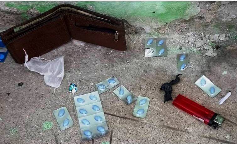 Al realizarle la requisa correspondiente, los policías encontraron entre sus prendas de vestir 24 pastillas de Midazolam y un envoltorio de nylon, de color negro, que en su interior contenía marihuana.