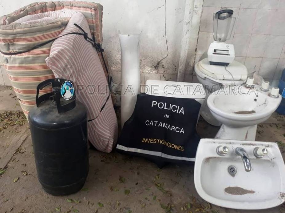 En dos viviendas ubicadas en las Manzanas “R2”y N° 22 del barrio Mi Jardín Norte, propiedad de las familias Cancino y Peschuita respectivamente, lograron recuperar dos colchones de una plaza, un juego de baño completo, marca Ferrum y una licuadora, mientras que en otro domicilio del barrio San Martín de Porres, donde reside la familia De la Vega, los investigadores incautaron una garrafa de gas de 15 Kg., que quedó en calidad de secuestro al igual que los demás elementos.