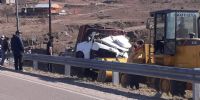 Los mayores daños se produjeron en la cabina del conductor quien solamente sufrió algunas excoriaciones.
