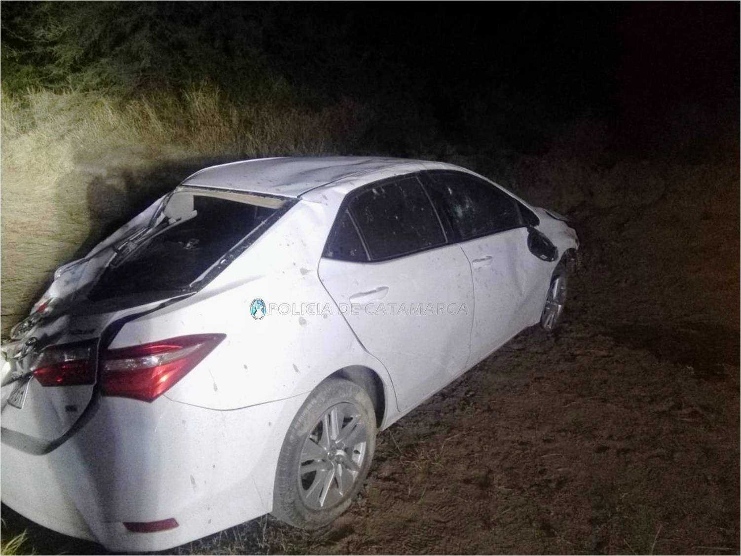 El accidente fue protagonizado por un automóvil Toyota Corolla, dominio AA178BH, de color blanco, conducido por Ismael Julio Saya (56), en compañía de María Pía Gil (52), oriundos de la provincia de Córdoba.
