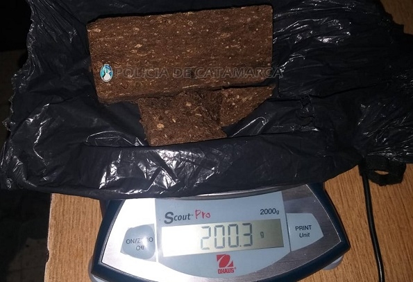 Más tarde, a las 3 de la madrugada de hoy, efectivos de la Comisaría de Andalgalá realizaron un operativo de control vehicular e identificación de personas en inmediaciones al puesto caminero de esa Ciudad, y procedieron a controlar una motocicleta Yamaha Crypton negra 110 cc., en la que circulaba un hombre de 33 años, y al realizarle la requisa correspondiente le encontraron entre sus pertenencias una bolsa de nylon, que contenía una sustancia herbácea que tras ser sometida a la prueba de campo correspondiente se comprobó que se trataba de 9 gramos de Marihuana, que quedaron en calidad de secuestro, labrándose las actuaciones de rigor