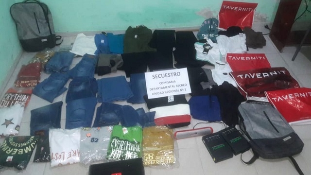 Las prendas habían sido se sustraídas en la madrugada de hoy, tras forzar la puerta de entrada en un local de ropas de Avenida Belgrano casi Felipe Varela de nuestra Ciudad de Recreo y fueron encontradas en las vías del Ferrocarril Belgrano Cargas.
