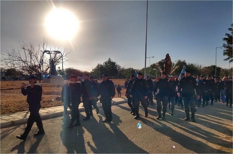 Al finalizar la caminata, el Capellán Policial, Of. Principal Pbro. Esteban Chayle, ofició la Santa Misa durante la cual se acercaron al Altar ofrendas destinadas a las familias más carenciadas de la zona, y luego de la Bendición final, todos los presentes participaron de una retreta musical ejecutada por los integrantes de la Banda de Música de la Policía de la Provincia, quienes pusieron color, brillo y solemnidad a esta actividad de profunda espiritualidad.
