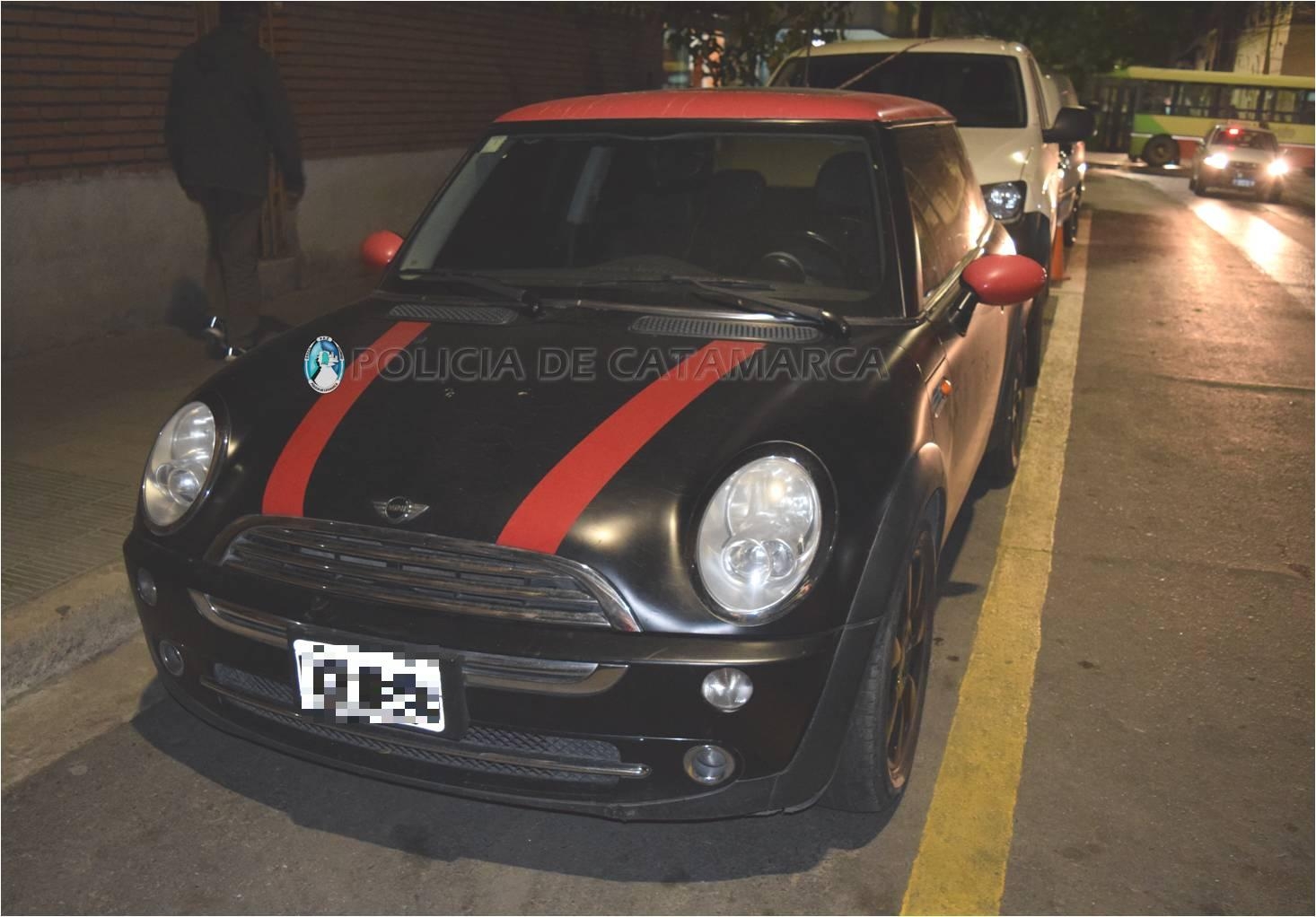 Efectivos de la División Sustracción de Automotores de la Policía de la Provincia procedieron al secuestro de un automóvil Mini Copper, de colores negro y rojo.