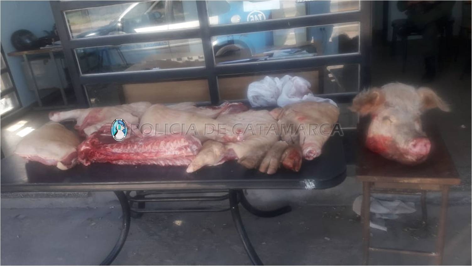 Tras inspeccionar el rodado, los efectivos encontraron en el baúl unos 90 Kg. aproximadamente de carne porcina, que eran trasportados sin la cadena de frío y medidas de salubridad e higiene correspondientes, en virtud de lo cual dieron intervención al personal de Bromatología de la Municipalidad de Valle Viejo, quien secuestró la totalidad de la carne y labró las actuaciones de rigor.